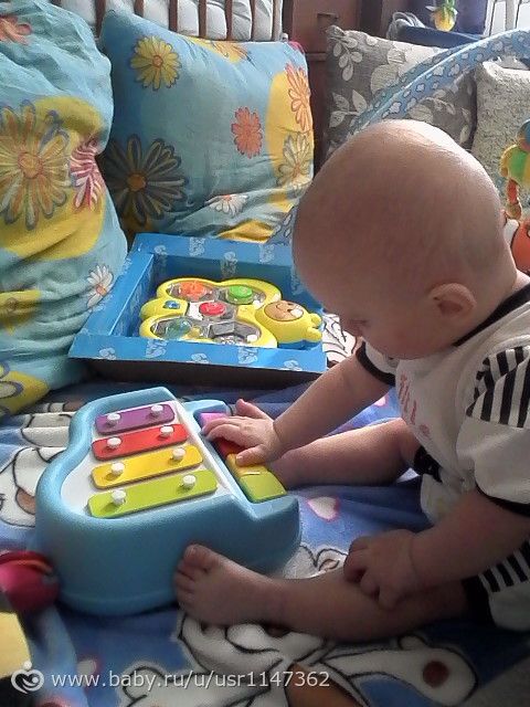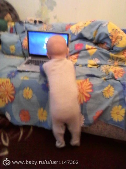 Из умелок вот что. Сидит хорошо, садится сам, сам встаёт у опоры, на четвереньках по-прежнему раскачивается и прыгает, улетает при этом далеко, только успевай ловить, чтобы лбом не приземлился))), умеет играть в ладушки, говорит как едет машина (брррррр).