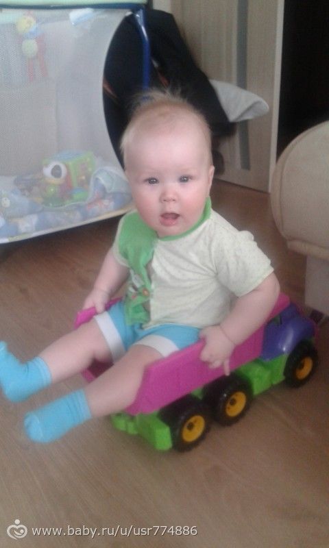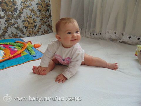 Девочки, всем приветик! Нам 11-го было 6 месяцев. Девчонка у меня растет улыбчивая, не капризная. Ползает как вертолет на пузе, встает на четвереньки и раскачивается, пытается сесть (пока голова перевешивает попу). Любит книжки, машинки, семечки, разные бумажки и провода. Да и вообще всё ей интересно, кроме своих игрушек. Вес так и набираем мало. Причина не известна. 10 дней назад ввели прикорм осторожненько. Но дня 2-3 как только процесс пошел, до этого энтузиазма у нее много было, а толку особо никакого. Прикорм не по ВОЗ, как врач сказала — сначала каши, яблоко и другие фрукты. Через месяц овощи. Зубов нет, но скоро будут)) Мы на ГВ. Днем кушаем по режиму (+- не строго), ночью как получится. 2 дневных сна на улице, один дома. Фаворит по прежнему брат. С него прикалывается больше всего.