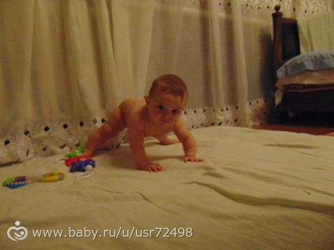 Простите что много, я просто не могу не показать, в шоке как быстро он всему учится и растет!!!Я сегодня тоже увидела, как моя поджала коленки, поднялась на ручках и стала раскачиваться. А еще слоги стала смаковать: да-да-да, например.