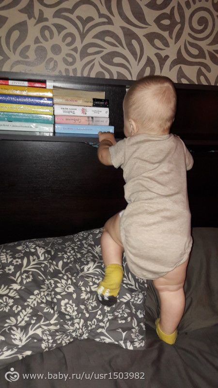 Умеем всё как все, сидим, стоим, ходим за руку, у опоры, прыгаем и приседаем постоянно как заведенный)))) Ползать мы так и не стали, сразу начали пытаться ходить, ну ладно, раз так надо, значит будет как я, неползательный))))