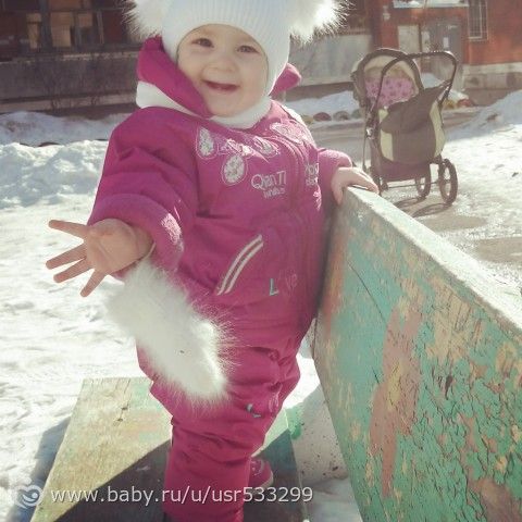 привет девчонки от нас с Алинкой) гулять ходили сегодня, пофоткала ее. А то тут делала плакат от 0 до года, и заметила, что чем старше тем меньше фоток у неё. У нас все хорошо, самостоятельно не ходит, стоять без опоры не может, зато вчера весь вечер как будто заело))) мама мама папа папа баба де, даже на видео записала первые словечки, до этого только слогами болтала. На др подарим лабиринт в котором ползать можно( были в игровой комнате ей очень понравилось, решили домой приобрести). Тортик закажем, друзей с ребятишками позовем родственников думаю будет весело)Начала готовить украшения, чтоб прям все празднично было, циферка 1 такая вот