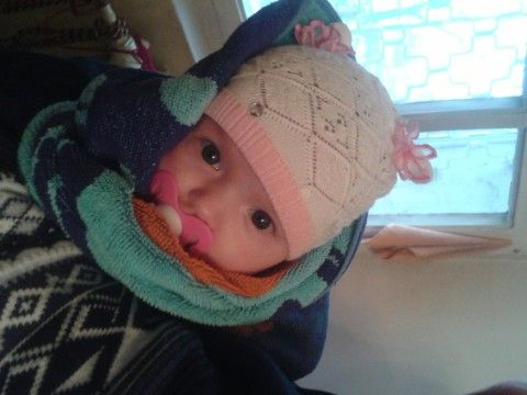 Вот нашла… на первом шапочка… на втором фото комбезик… вам ведь только до машины дойти