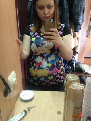 у меня сейчас уже немножко есть животик, но там еще жирок есть свой, под одеждой конечно пока никто не видит