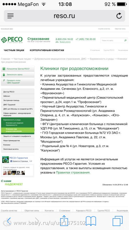 У моего мужа от работы ДМС на него и на меня, от Ресо. У кого такое же страхование, подскажите, это значит можно выбрать роды бесплатные из этого списка роддомов? Даже в ПМЦ? Или я что-то не понимаю? Конечно в страховую позвоню, узнаю подробнее завтра)))