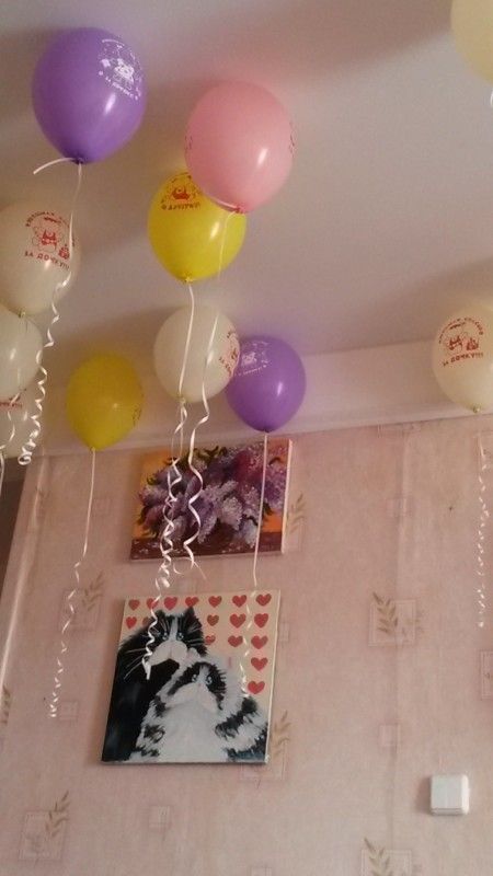 Единственное фотографа позвали) ну и родители бабушки цветов кучу подарили и мамамукрасила комнату гелевыми шариками