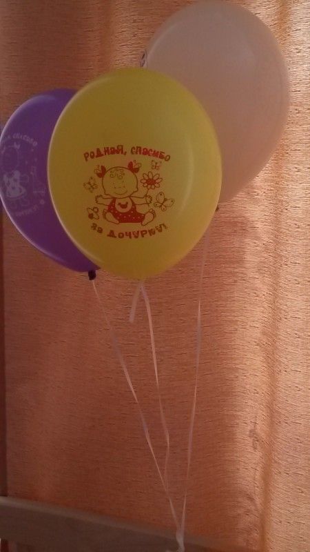 Я не хотела ничего, хотела домой и все. Дома ждали мои родители и мужа, мои сестренки и его сестра, но я хотела чтобы все ушли, так устала от больницы, от недосыпания. Дома было море шаров, украшений, наклейки "У меня родилась дочь!", цветы.