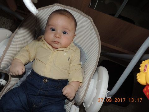 Всем привет! Нам сегодня 3 месяца! Растет парень, вырос очень, одежду носим 6 мес. Весит примерно 6400, но к врачу в четверг, потом точно напишу. Животик все еще беспокоит, какаем через день, а иногда через 2, но сам и жидко. Думаю после прикорма наладится. Развивается по сроку, агукает, переворачивается на бочок, играет с подвесными игрушками в развивающем коврике. Общается с нами, агукает в ответ, улыбается. В общем все хорошо у нас)) а еще на нижней десне увидела 2 белых зубика, но они еще не вылезли, под кожей, десна набухла. И слюньки потекли)))