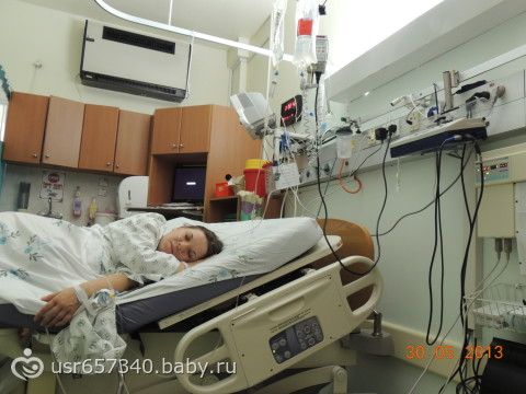Короче пролежала я в этой комнате до 6 вечера, каждый час проверяли раскрытия, но раскрытие было всего лишь 3 пальца, прокололи пузырь, поставили аситакцин но от схваток моих стал пульс малыша падать(((Короче решили делать кс, так как что бы не мучать не меня ни малыша, поставили эпидураль, я ещё час проболдела, муж всё время с 9 утра был со мной, в 19-30 где то меня увезли в операционную, я была в сознаниии, помню на анастозиолога наехала, лежу а пальцы на ногах то чувствую, и говарю колите ещё я всё чувствую, но он мне объяснил, что я буду всё чувствовать как меня трогают, но боли не будет, и вот в 19-47 появился на свет мой крошечка, я ревела как белуга! врачи ржут, а я слово сказать не могу, как только мне его показали я вырубилась и проснулась уже от того что мне холодно, открыла глаза я уже в 21-30 в послеродиловке, было холодно, потом меня в 10 перевезли в палату, Саша и мама меня уже ждали, в палате меня укутали в 3 одеяла и сказали отдыхай до утра, спросила как что с малышом, дак ответили, что он в порядке, в детском отделении он, Саша увидел можно сказать его первым, не считая того, что я увидела его, когда вытащили.