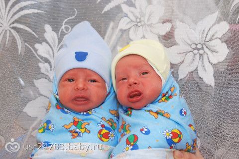 10 декабря во все больнице отключили свет и всех плановых перенесли на 11, а с 11 декабря часть перенесли на 12- в их число я и попала))) операцию должны были проводить заведующая и моя врач — обе ужасно противные тётки. 11 днём пришёл анестезиолог и сказал, что всё-таки добила врачих двух. Попросил подписать бумаги и ушёл, сказав, что завтра встретимся))) Но не тут то было. Ровно в 00.00 12 декабря у меня начал побаливать живот- так он у меня ещё не болел, и стали подтекать воды. Я подошла к медсестре, она дала мне баралгин и отправила спать. Я таблетку выпила, но уснуть совсем даже не получалось- оооочень всё болело. Так я с часик ещё походила, снова подошла к мед.сестре и сказала- «Врача позовите- у меня двойня и показано КС!» После осмотра дежурная врач и сказала, что раскрытие 4,5 пальца-будем рожать сами. ???????????? Так мне же КС по показаниям???????? Она так ты уже родишь скоро! На, что я ответила, что не хочу быть слепой мамой, хотя соблазн родить самой был велик. Эх! Звоню мужу, говорю, что всё повезли на операцию. Он ни чего спросоня не понял. И всё, одели маску, привязали, поставили укол и я провалилась в глубокий сон. Проснулась от того, что меня бьют по щекам и говорят: Аня, вставай!" Я сразу открыла глаза, говорю: Что наркоз не подействовал?" Они посмеялись, сказав, что уже всё. Два мальчика, вес 2700 и 2730, 48 и 49 см соответственно, оба 7/8 по Апгар. Меня ещё заинтересовал вопрос почему так мало, но меня уже повезли в реанимацию. Через 10 часов меня перевели в палату. Я позвонила мужу и заплакала, сказав, что до сих пор их не видела их ни чего о них не знаю как они там. Он мне выложил всю информацию о них: рост, вес, время, состояние. Оказывается он с 8 утра сидит в больнице и всё уже узнал. Потом его впустили ко мне и привезли наших малышей. Они оба не спали. Я дала им грудь-как это незабываемо. Нас выписали на 11 день — у меня не сокращалась матка и началось воспаление, снова чистили под наркозом. Но это всё уже в прошлом. И я подумываю о девочке))) Вот так появились Тимур и Вадим!