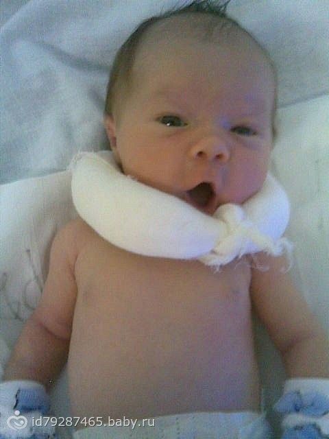 Чудесный ребёнок тттт!!! Мы тоже с корсетом таким на шее первый день были, плечики провисали, и тоже обвитие было, и с рукой к голове прижатой шла.