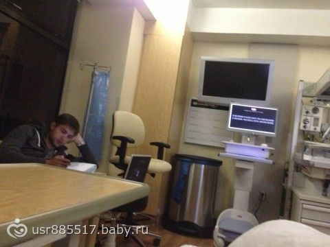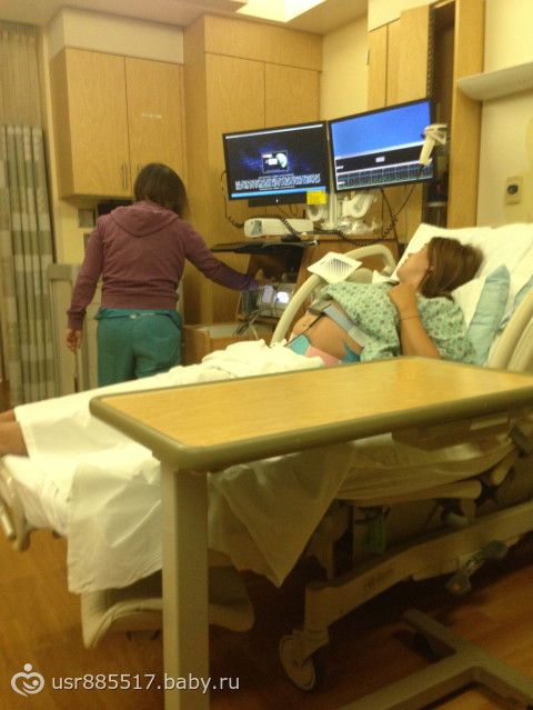 Вечером собрали вещи и легли отдохнуть, проснулись в 3 и поехали в госпиталь. В госпитале меня сразу же положили в родовую палату, тк были небольшие схватки и поставили капельницу с окситоцином (я была не против стимуляции). В 9 утра пришел мой доктор, осмотрел меня и сказал что будет прокалывать пузырь, схватки усилятся, но я в любой момент могу попросить эпидуральную анастезию. Прокол пузыря — процедура абсолютно безболезненная, воды оказались прозрачными, с этого момента схватки я начала чувствовать сильнее, но не хотелось лишаться ног, так что я решила потерпеть)