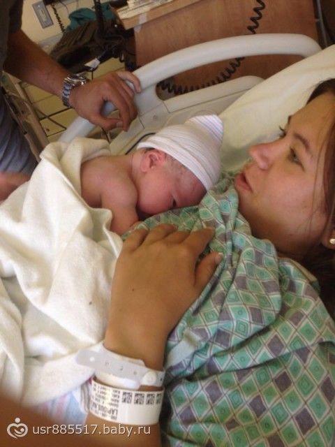 К 11 утра схватки стали более болезненные и я попросила эпидуралку. С этого момент я лежала и отдыхала, смотрела сериалы и кушала замороженный лед в неограниченных количествах и даже умудрилась поспать 3 часа) Муж все время был со мной рядом) К 3 часам приехала моя мама) Судя по монитору схватки усиливались, но я особо ничего не чувствовала, кроме небольшого давления. К 5 давление усилилось и я поняла что скоро буду рожать. В 5.15 пришел доктор и сказал медсестре чтобы она начала учить меня тужится) Ну она мне рассказала все и мы начали тренироваться) Давление все усиливалось и усиливалось но боли я все также не чувствовала) В 5.45 появился доктор, за 3 секунды на него одели халат и он сказал давай) Я 3 раза потужилась и ровно в 6.00 на свет появился наш сыночек!