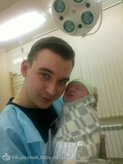 молодец!)))А папка свеженький такой!)))каак будто с отдыха!)а не с родов!)))