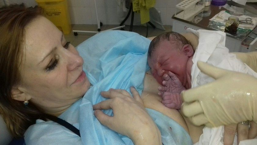Беременность протекала тяжело, потеря любимого мужа в 8 недель отпечаталась очень сильно на моем состояние! в 22 недели на узи я узнала что есть угроза преждевременных родов, короткая шейка и открытие в палец, не удивительно веть я одна заботилась о двоих детях, магазин, тяжести, дома дел не початый край, но хоть я больше не оптимист по жизни тут настрой был доносит малыша, в 30 недель у меня начались схватки но я дома умудрилась их остановить, зная мою ситуацию гинеколог выписала мне генипрал, в случае чего вколоть себе сразу что я и сделала а так же но шпа и свечи с папаверином, магний б6, и покой, спустя 3 часа боль стихла, напряжение ушло и слава Богу все остановилось, пошла к гине, она предложила лечь на сохранение, пришлось отказаться, так как других детей не оставить одних, вообщем доносила я свою бусинку до 38 и 2 дней! Роды начались в 23 часа дома 17.04.2017 г, в туалете кровавая пробочка как сгусток вышла, легла на кровать в предчувствии что завтра рожу))Лежу значит прислушиваюсь к своей малышке, тишина, потом как дала и шелк (звук такой не приятный)испугалась, пошла в туалет глянут как чего там, поняла что все пора собираться, воды подтекают,… вызвала скорую и поехали рожать))!!! Приехала, в роддом ехали пол часа, боялись рожу в машине, хотя как?!.. если схваток ноль! Самое интересное я новенькая в поселке, врач скорой, это я потом узнала, моя дочь встречается с ее сыном)Ну так вот… значит в роддоме от клизмы я отказалась… роды четвертые да и с моей шейкой можно и на унитазе родить… проводили в род зал с патологиями так как воды отходили зеленоватые… а доця бьет меня прям уххххх!!! Прицепили мне ктг дистанционный… с ним туда сюда ходила а в коридоре на мониторе акушерки наблюдали все это… стонала, учили меня дышать а не стонать(говорю мне так легче)Вообщем наблюдали они это все с улыбкой Отношение у нас с ними было на ура! В первые за все роды!!!.. устали они наблюдать как я не продуктивно стону уже 6 часов, давай ка Жаннчик укольчик сделаем а лучше капельницу и родим быстренько, в 7 утра мне вкатили капельницу с окситоцином и понеслось… в 8 утра я сплывала с кровати под ручки и на кресло, и тут начались больнючие потуги… про схватки я молчу, это был ад, почему было так больно думаю окситоцин… и стала тужится… жуть но родила со второй потуги,51 см,3260 кг, в 8.10 утра,18.03.2017 г.это было чудо!!! Мне ее положили на живот мою Алисочку, маленькую выстраданную птичку, такое счастье это было… я была наконец то за 7 месяцев счастлива ?