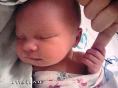 И вот долгожданная схватка, я тужусь, еще и еще… Акушерка в этот момент говорит, что мелочь какая то у нас рождается ))) Еще схватка и моя малышка появляется на свет!!! Мокренькую и синенькую, очень громко кричащую мою самую любимую мелочь кладут мне на живот, я трогаю ее и не верю своему счастью. Потом ее поднимают вверх, показывают мне и спрашивают: кто, мамочка? А я отвечаю: девочка! И думаю в этот момент как же она похожа на мужа. )) Пришел педиатр, осмотрел мою малышку, взвесил, измерил и заявил: 2180, 45 см, 9 баллов по АПГАР. Ребенок хороший, но маленький, ничего страшного, откормишь!