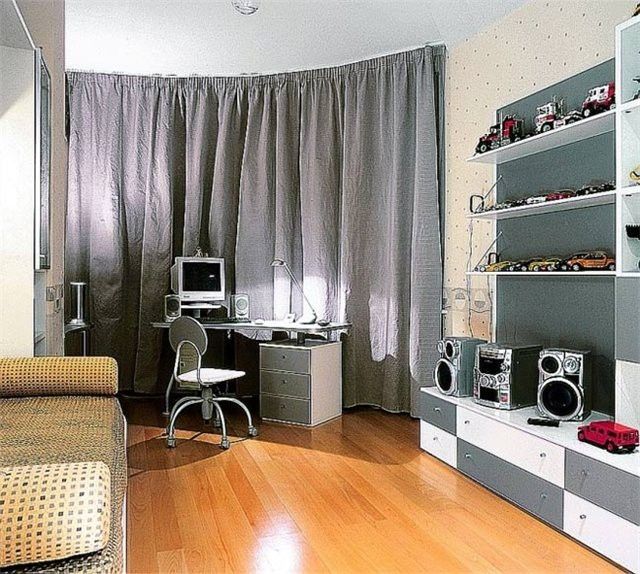 Ребенок – подросток – хозяин комнаты, поэтому варианты декора и сам дизайн комнаты, необходимо согласовывать с самим ребенком, исходя из его вкусов, пристрастий и пожеланий. Но не нужно забывать о зонировании, без разделения на зоны (даже если подростку это не нравится) не обойтись.