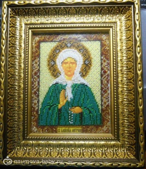 Вчера 02.04 был день памяти Матронушки и я как раз окончила вчера вышивать и поставила в рамочку.