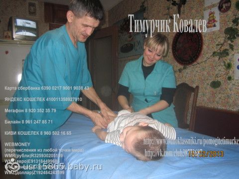 Времени упущено много. Тимурка начал получать реабилитацию, когда ему было уже 2 года 9 месяцев. Благодаря отзывчивым людям мы смогли собрать деньги на лечение. Первый курс был в июне 2012 года. Тимурка прошёл первые в своей жизни сеансы физической реабилитации в городе Волжском в реацентре «Первый шаг». У нас начала укрепляться спинка, появился упор на руки, уменьшилась спастика, тонус в ножках стал тоже меньше, сын стал чаще вставать на полную ножку, научился переворачиваться с живота на спину. У Тимурчика ошеломительные результаты и теперь нам дают очень хорошие прогнозы! Но останавливаться нельзя!