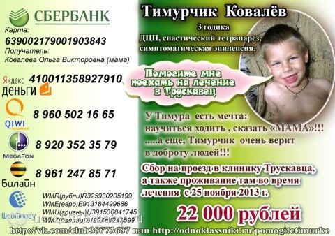 К сожалению, заболевание Тимурки одним курсом и таблетками невозможно вылечить, нужна постоянная и непрерывная реабилитация!