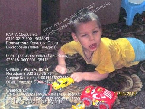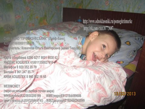 Спасибо вам, что вы все рядом! Я благодарна вам от всего материнского сердца, что вы даёте моему сыночку Тимурке шанс на полноценное будущее!!!
