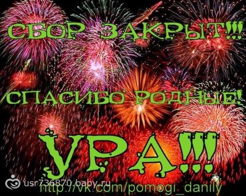 Состояние Данечки улучшается, бронхит постепенно проходит. Капают альбумин, делают ингаляции. Сейчас созванивалась, Оля говорит болит животик у кнопика, скорее всего последствие антибиотиков. Кушает хорошо! Самое главное! В голосе Оли слышна тревога, тревога за будущее, стараюсь поддерживать со всех сил. Девочка которая сегодня была с Данечкой в клинике, предала маме 500 гривен. Огромное спасибо что отозвались и помогли нам! Так же сегодня перезвонили и сказали что загранпаспорт Оли готов. Семья пройдена большая часть пути! Мы обязательно отправим кнопика на лечение! Спасибо всем большущее за помощь и поддержку!!!!