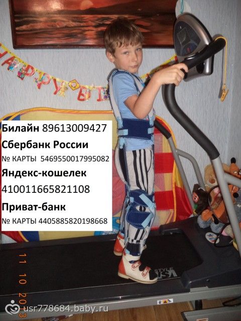 За 7 лет мыпрошли 2 курса реабилитации в центре Евтушенко, 7 курсов реабилитации вТрускавце в клинике Козявкина, 16 курсов реабилитации в г. Киеве, гипсование, операцию по ахиллопластике в г. Тула,