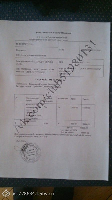 Квитанция об оплате дельфинотерапии