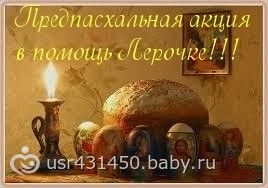Возмите участие в предпасхальной акции помощи нашей Лерочки!