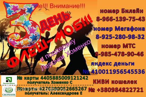 Поэтому с 3 марта стартует флеш-моб в поддержку Лерочки Хоменко.