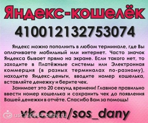 РЕКВИЗИТЫ ДЛЯ ПОМОЩИ Данечке :