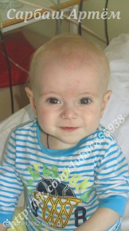 Сарбаш Артемка родился 16.04.2013 года с весом 4240г. рост 54 см. Темочка третий ребенок в семье. Когда малышу было 3 недели — начали проявляться признаки атопического дерматита, с которым долго не могли справиться. Со временем к атопическому дерматиту начали присоединяться другие инфекции: ОРВИ, бронхит, этмоидит, аллергический ринит. В результате – нам поставили диагноз: правосторонняя бронхопневмония, которая в процессе длительного лечения была в отрицательной динамике (состояние ухудшалось) и перешла в двухстороннюю.С семи месяцев мы находимся на лечении в г. Донецке в Областной детской клинической больнице. В ходе проведения лабораторных иммунологических исследований у сыночка выявили изменения со стороны клеточного и гумморального звеньев иммунитета. После дополнительных анализов в г. Киеве на кафедре иммунологии подтвердился страшныйдиагноз: Тяжелый комбинированный иммунодефицит (Т-В+NK-). Как результат -развиваются и не поддаются лечению вирусные инфекции и сопутствующие болезни: двухсторонняя полисигментарная пневмония, затяжное течение, гнойный эндобронхит, хроническая диарея, анемия II ст., белково-энергетическая недостаточностьII ст., атопический дерматит, распространенная форма, непрерывно рецидивирующее течение.Выраженная местная реакция на БЦЖ.
