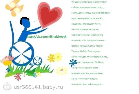 Перевела вам 500р., сумма небольшая к сожалению. Дай вам Бог терпения, восхищаюсь вами! А Никите здоровья и чтобы он поскорее встал на ноги сам!!! Храни вас Господь!!!!