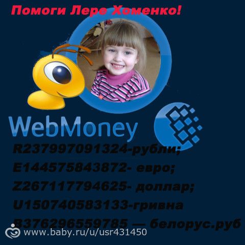 Для сбора средств на лечение открыт WebMoneyкошелек