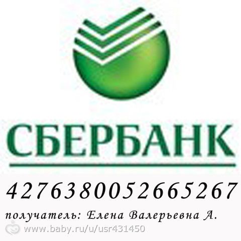 — СБЕРБАНК карта № 4276380052665267, получатель: Елена Валерьевна Александрова