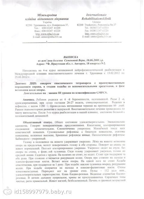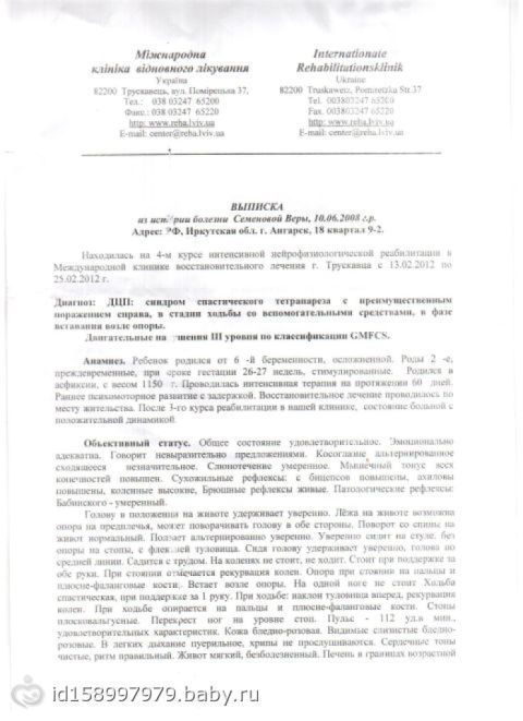 Сейчас Верочке требуется 4й курс интенсивной нейрофизиологической реабилитации, который проводится в Международной клинике восстановительного лечения г. Трускавца.