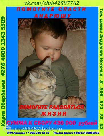 СЕЙЧАС НУЖНО ОСОБЕННО ПОСТАРАТЬСЯ, МЫ НЕ МОЖЕМ ПОДВЕСТИ АНДРЮШЕНЬКУ. МЫ ПРОСТО ОБЯЗАНЫ СОБРАТЬ ЭТУ СУММУ!!! СРОК – ЯНВАРЬ 2013!!!