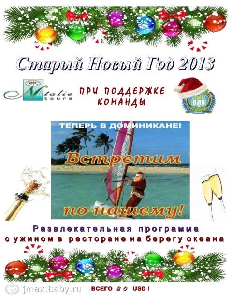 Дорогие друзья! Коллектив компании «Натали Турс» Доминикана при поддержке рыбного ресторана Пульпо Кохо и команды ВДВ организовывает благотворительную вечеринку приуроченную к празднованию Старого Нового года! Все средства, полученные от продажи входных билетов, будут направленны на оказание помощи Мише Махову – маленькому, но очень сильному малышу!