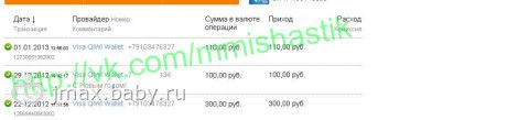 QIWI-кошелек: нет поступлений;