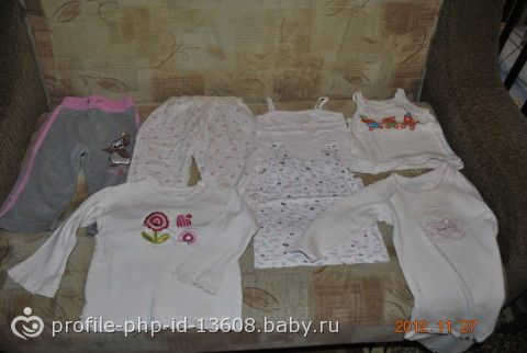 Отдам вещи на девочку б/у р-р 74 (колготки, маечки, кофточки, штанишки) + 2 пары зимних сапожек р-р 23 (сильно ободраны носы) одни черные другие белые.