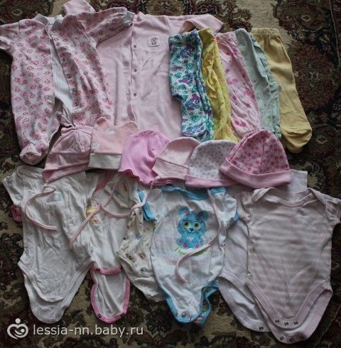 5 ползунков, 6 бодиков, 6 шапочек, 1 розовый слип, 1 розовый спальный мешок 56-62 размер