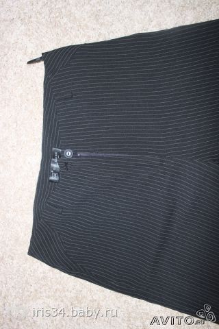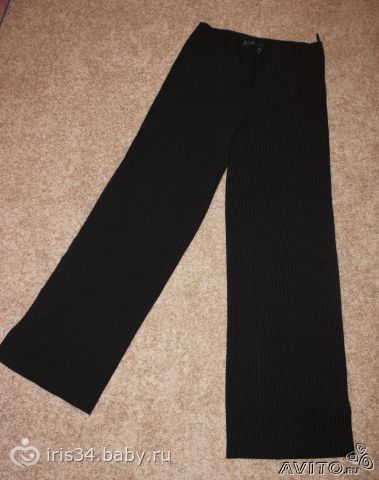 1.Брюки широкие черные в тоненькую белую полоску, на молнии, легкая ткань.Талия около 80 см, длина 109см.