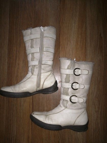 Пальто зимнее на девочку официальный рост 152, но мы носили на 140. Есть нюанс — сзади внизу подола дырки (такая у нас раздевалка в школе и дикие школьники и т.д.). Пальто светло-розовое на рост 140, есть к нему еще пояс ( не сфотографировала) и пристегиваемый мех на капюшон, нюансы тоже есть — микродырочки в местах натяжения карманов. Плюс сапоги белые фирмы Polaris размер 36, натуральные теплые, непротекаемые, но видок уже не тот, для дачи вероятнее всего. Плюс добавила для девушки которая собиралась забрать несколько ( получился пакетик) шапок, шарфиков и варежек/перчаток.