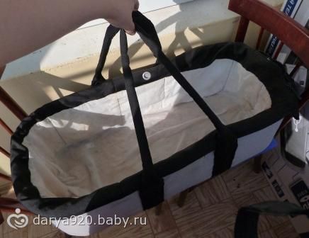 Цвет серый с черным (универсальный) стояла под навесом ждала своего часа и случайно через пленку из за ветра на нее попал дождь и потом солнце пригрело а следы от дождя уже не удалось отстирать… В нее нужно или положить пледик потом лялю или внутреннюю обивку перешить..