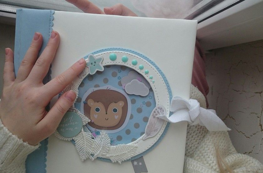 Обложка выполнена из кожзама, листы прошиты для большей надежности вручную. Внутри 72 милейшие страницы (36 листов) для фотографий и маминых заметок. Этот альбом поможет сохранить самые важные и трепетные моменты из жизни Вашего крохи