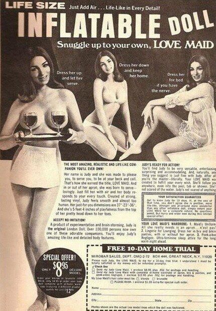 Надувная кукла натуральных размеров с испытательным сроком 10 дней. Конечно, и сейчас легко можно купить подобную куклу, только вам не предложат перед покупкой опробовать её в домашних условиях в течении 10 дней.
