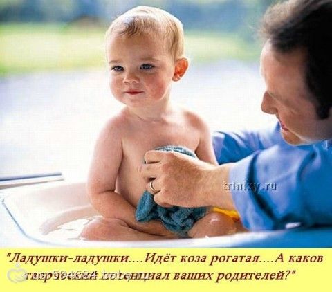 Это точно)))))))И типа-«Мама достала своей кашей, как объяснить ей что я хочу колбасу?!»,«Папа не понимает, что если он не купит мне эту машинку, то так и не сможет спать рядом с мамой»,«Бабуля приехала)))Папа, мама держитесь)))»
