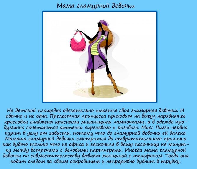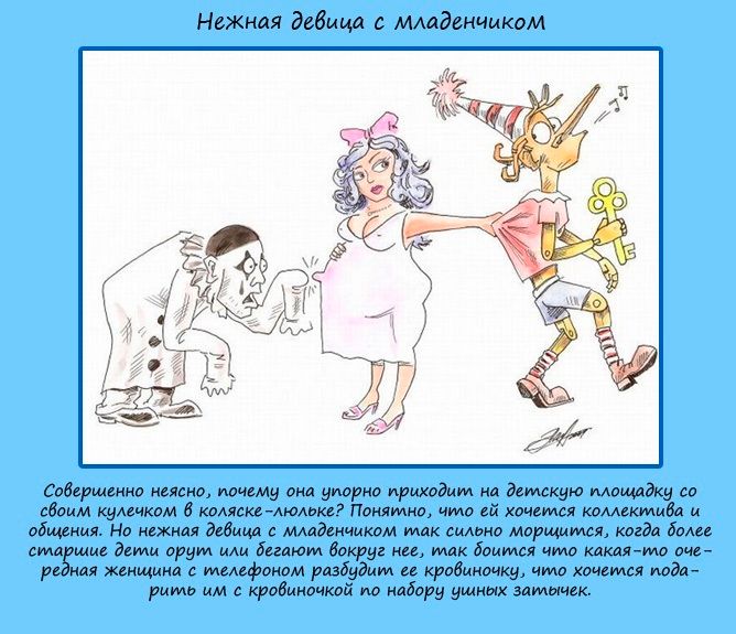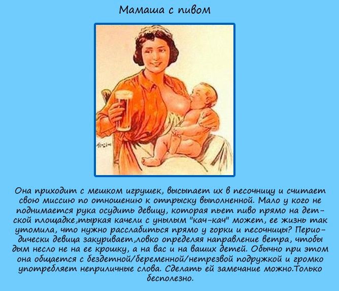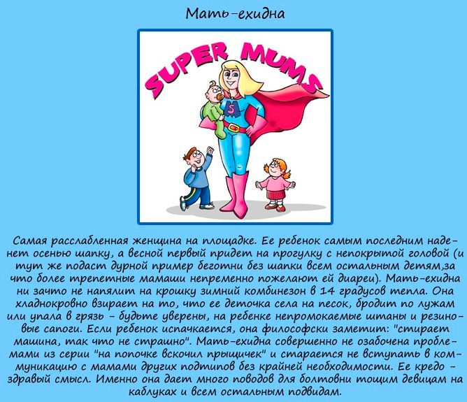 Какие бывают мамашки или классификация мам 15 мая 2012 16:31 * Комментарии Пожалуйста, будьте вежливы и доброжелательны к другим мамам и соблюдайте правила сообщества ПожаловатьсяСкопировать ссылку ✿ܓНаталья✿ܓ Татьяна13 лет Москва А что нормальных среди мамочек нет — только с психическими патологиями? ПожаловатьсяСкопировать ссылку АлЕкСаНдРа Илья14 лет Краснокамск я наверно ехидна из группы единомышленниц)) ПожаловатьсяСкопировать ссылку ЛуЧшЕмЕнЯбУдЕтТoЛьКoМаЯдØчь Алиночка14 лет Калуга ПожаловатьсяСкопировать ссылку ЯСерыйВолк ЗубамиЩелк Кирилл14 летАнастасия11 лет Тула Я походу ехидна))) ПожаловатьсяСкопировать ссылку Сарматка Аделина14 летАмина13 лет Владикавказ наврное про погодок… Предыдущая статьяОх, уж эта реклама!!!Следующая статьяПолиткорректные выражения.