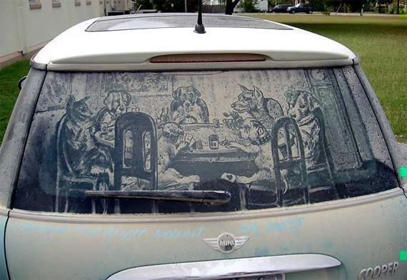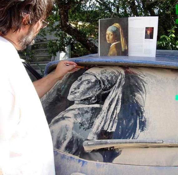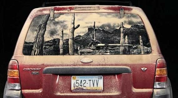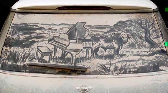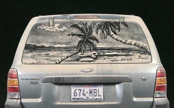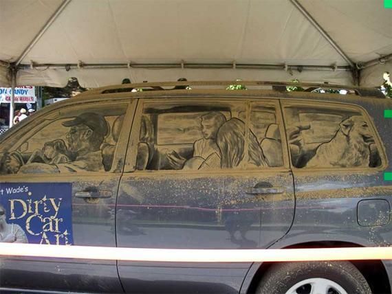 То, что дорожная пыль — уникальное «сырье» для картин, заметили уже давно: грязные стекла неухоженных машин часто покрываются надписями вроде «Танки грязи не боятся» или «Помой меня». Американец Скотт Уэйд пошел немного дальше и приспособил покрытые слоем пыли стекла машин местных жителей под холсты. Все свободное от основной работы время он проводит за росписью грязных машин, украшая их портретами, пейзажами, натюрмортами, карикатурами или же просто забавными картинками.