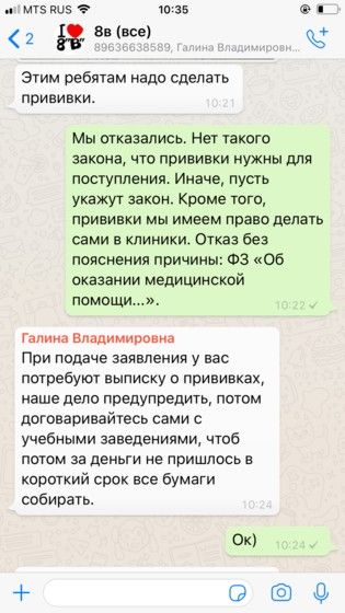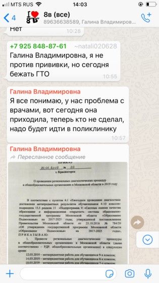 После учитель приходила в класс и внушала детям, что все кто не поставил прививки не поступят в учебные заведения (давление на несовершеннолетних и надуманный аргумент!)!!! Тоже самое учитель не стесняется писать и родителям! Даже «переживает» о наших денежных тратах )))