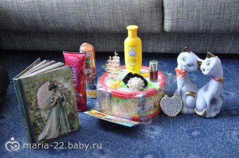 набор для сына, я не отрицаю, передарила, но опять таки не вижу тут ничего страшного, если мы этой вещью пользоваться не будем, ибо сынок у меня купается с детским мылом, а голову моем своим шампунем, этот наборчик долго стоял и я первый раз подумала почему бы не подарить, ну что ж мне его теперь выкинуть чтоли?